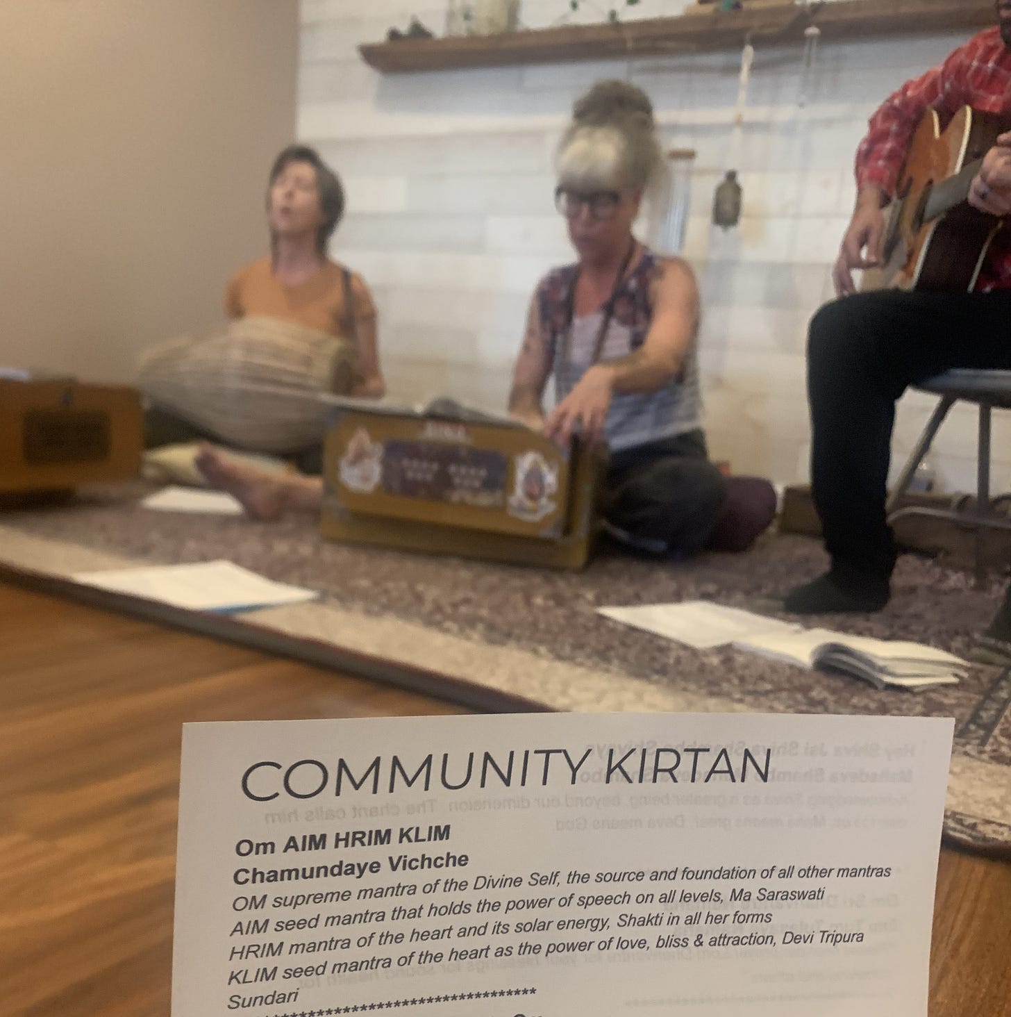 As my daughter and I walked home, it felt like we were being called to community kirtan, so we had a talk about it. I actually resisted, but my daughter said she felt like we were supposed to go, so we followed her intuition and got ready to head out.