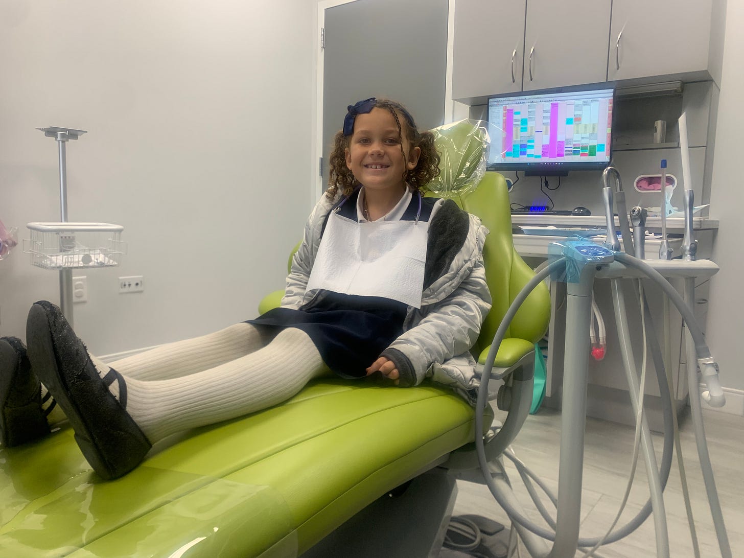 You see, she got her first-ever fillings a month ago and had some residual pain, so we went back to the dentist, thinking her bite was off, only to learn they did a shitty, rush job and the two fillings have to be redone, as there’s a hole right in the middle of it. However, that didn’t explain the pain on the other side of her mouth - which two dentists and her pediatrician dismissed – so I made an appointment for a second opinion at another dental practice, which we were eagerly awaiting throughout the weekend.